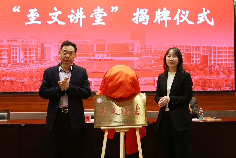 3月29日,熟女视频 党委举行基层党建书记项目“至文讲堂”启动仪式。校党委常委、副校长吉明明出席活动并为“至文讲堂”揭牌。