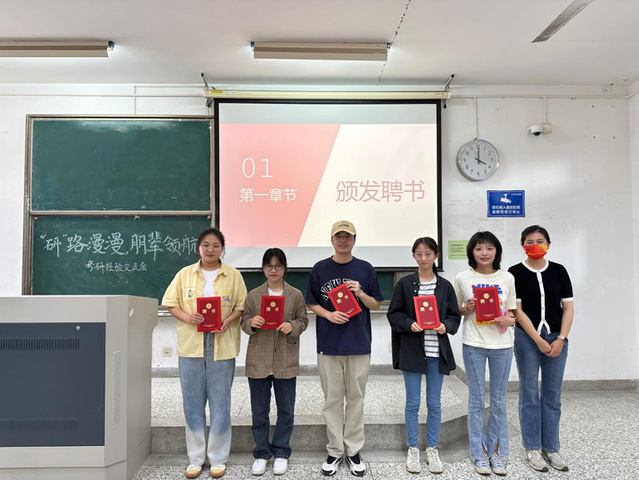 吴晓璐老师祝贺五位同学取得优异成绩成功上岸并为他们颁发聘书。