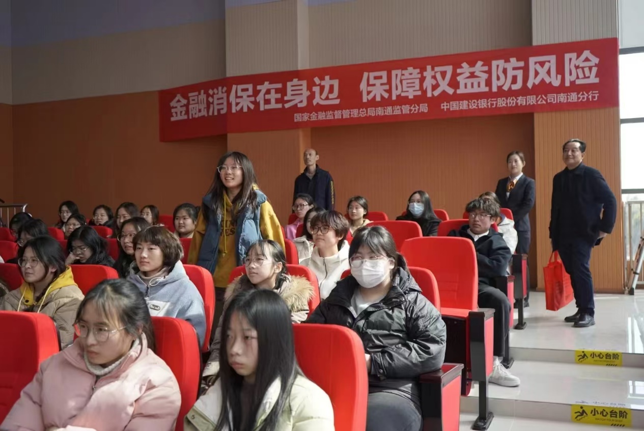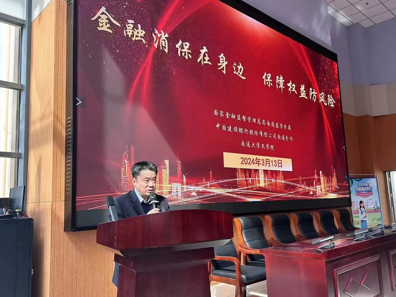 3月13日,为提升在校大学生的金融素养和风险意识,确保他们能够有效地维护自身权益,熟女视频 携手国家金融监督管理总局南通监管分局以及中国建设银行股份有限公司南通分行,共同开展了一场主题为“金融消保在身边,保障权益防风险”的宣传教育活动。