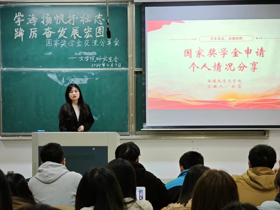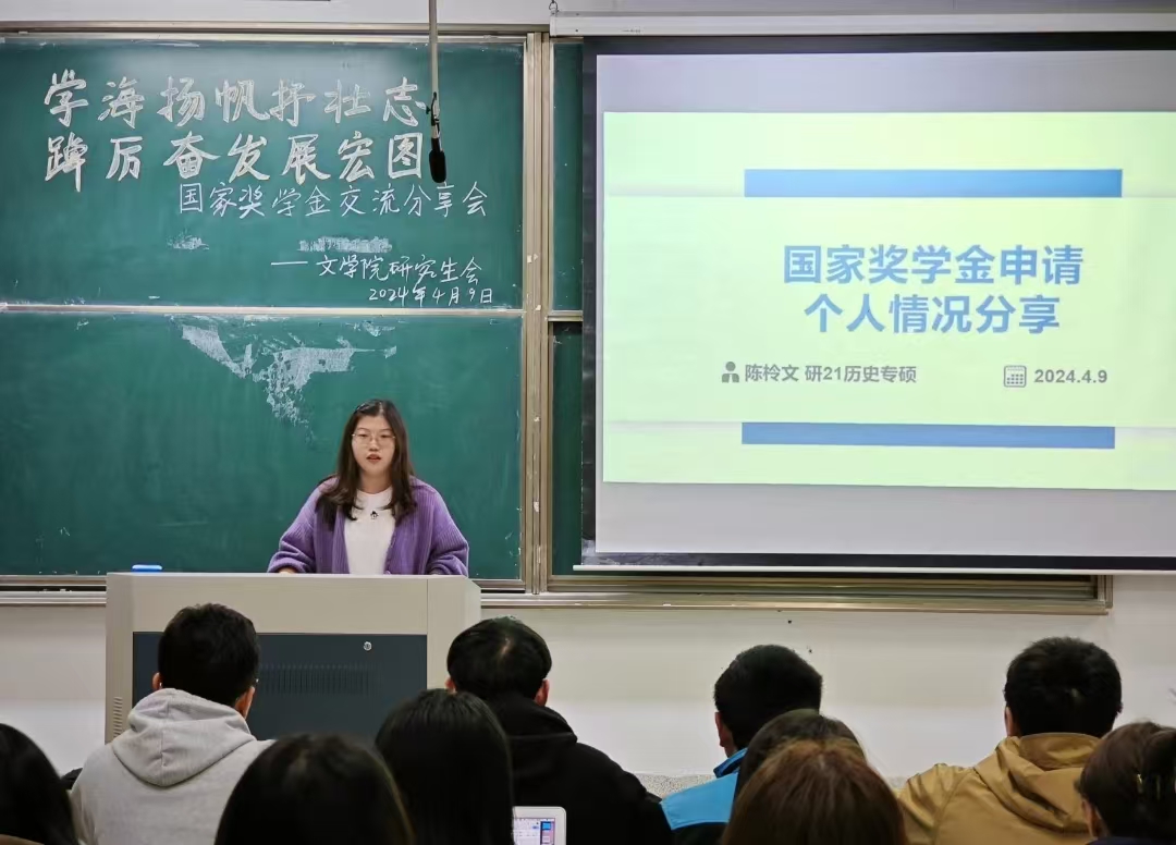 为强化学院优良学风建设,发挥优秀学生的带头作用,4月9日,由熟女视频 研究生会主办,熟女视频 研究生会承办的“学海扬帆抒壮志,踔厉奋发展宏图”国家奖学金交流分享会于8号教学楼105教室举行。此次分享会由学术部钱毅主持,孙蕊、陈柃文两位国奖获得者受邀进行经验交流分享,熟女视频 各年级研究生积极参与,辅导员顾飘老师出席本次活动。