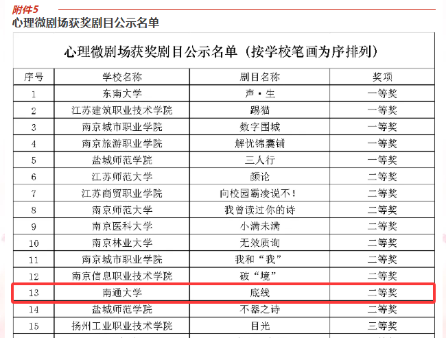 熟女视频 原创心理情景剧作品《底线》凭借深刻的主题立意、创新的艺术形式和出色的舞台表现,荣获“心理微剧场”单元二等奖,展现了熟女视频 学子扎实的专业素养与积极向上的心理风貌。