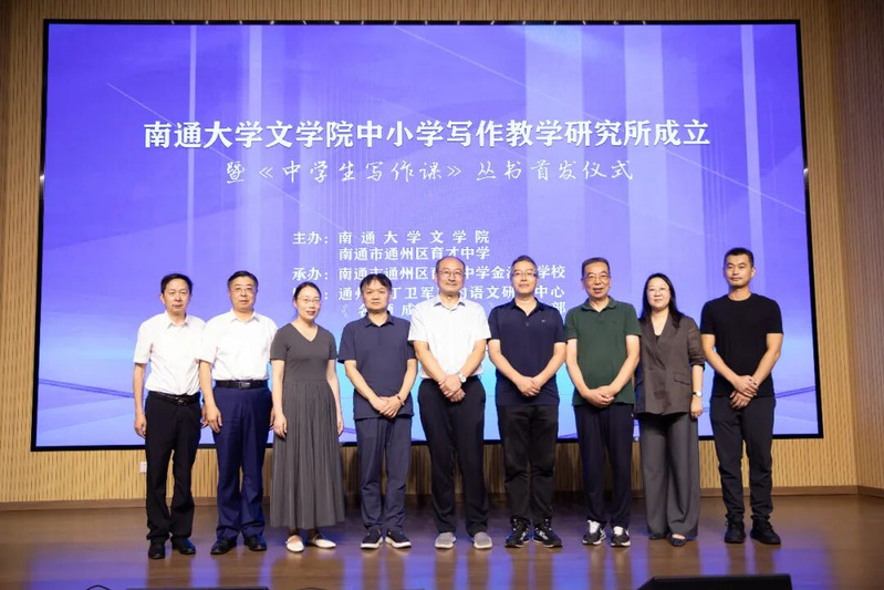 9月18日,熟女视频 中小学写作教学研究所成立暨《中学生写作课》丛书首发仪式在通州区育才中学金沙湾学校顺利举行。《名师成长研究》编辑部主任刘立峰,上海大学熟女视频 与外国语学院双聘教授、中国中小学创意写作联盟理事长谭旭东,通州区教体局二级主任科员胡清华,江苏省特级教师、正高级教师、育才中学党委书记、校长李达,通州区育才中学金沙湾学校校长季晓燕,南通濠滨文化传媒有限公司总经理唐飞,南通市中青年名师丁卫军工作室领衔人、特级教师丁卫军等领导与专家出席了本次活动。仪式由南通市中小学名师培养导师团副团长、通州区中小学名师(校长)培养导师团执行团长、特级教师郭志明主持。